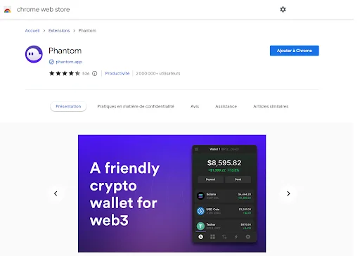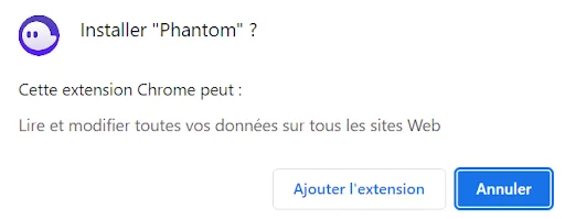 Vous devez télécharger et installer l’extension directement depuis le site de Phantom.