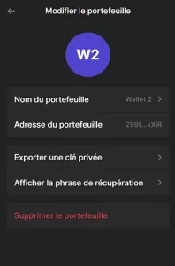 Si vous avez créé plusieurs sous-portefeuilles, il peut être très utile de les renommer. Il suffit simplement de vous rendre dans les paramètres, de cliquer sur votre wallet puis sur les trois petits points à gauche. Vous pourrez alors modifier le nom du portefeuille. C’est une façon de mieux organiser et de sécuriser ses actifs numériques.