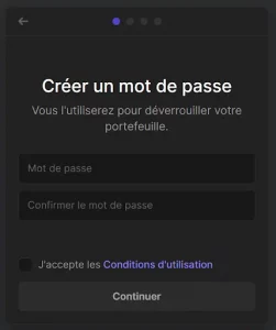 Vous devrez créer un mot de passe et accepter les conditions d’utilisation.