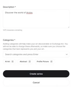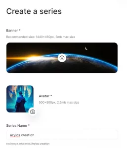 Vous devrez tout d’abord créer une série, c’est à dire une collection qui regroupera vos oeuvres 1/1.