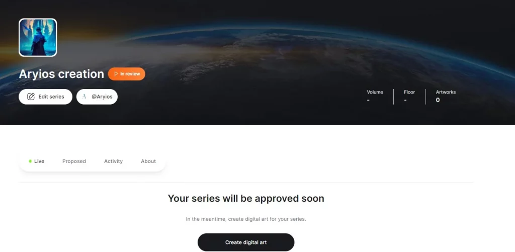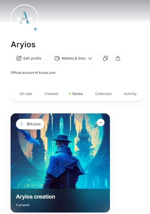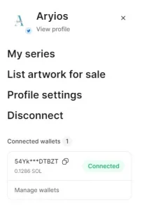 En cliquant sur votre profile, vous pourrez à présent accéder à vos collections avec « My series ». Dans cette section, vous pourrez visualiser vos différentes séries, en ajouter d’autres ou ajouter des NFTs à vos collections.